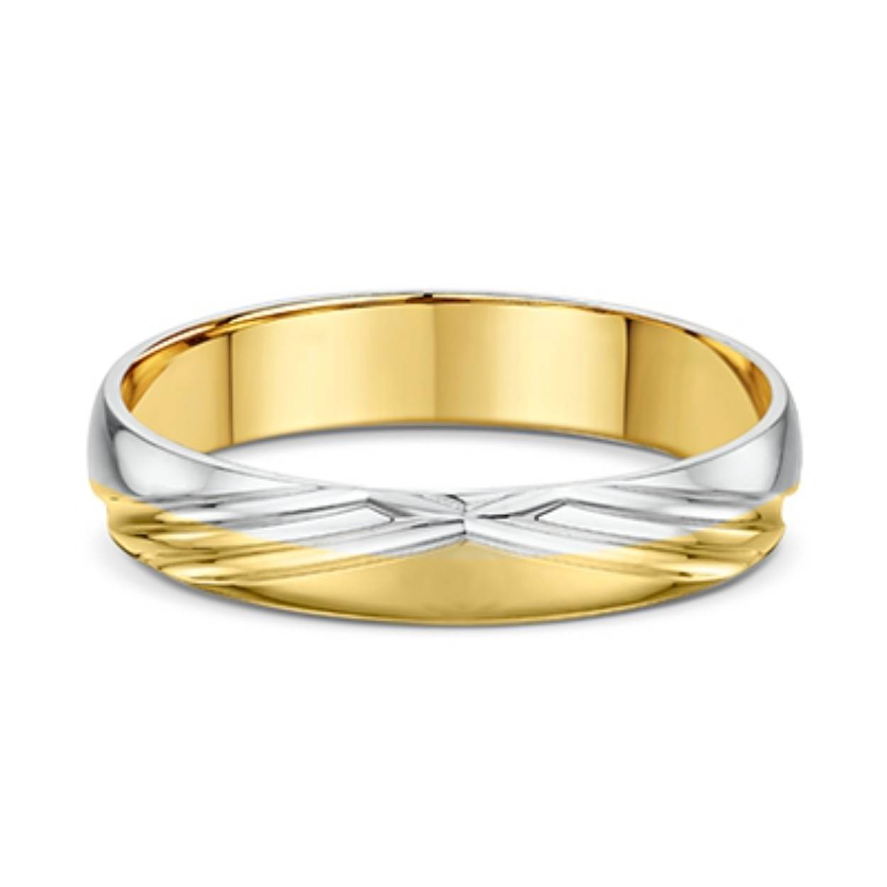 14 karaat wit/geelgouden trouwringen, bicolor, Damesring is gezet met  0.015crt diamant.