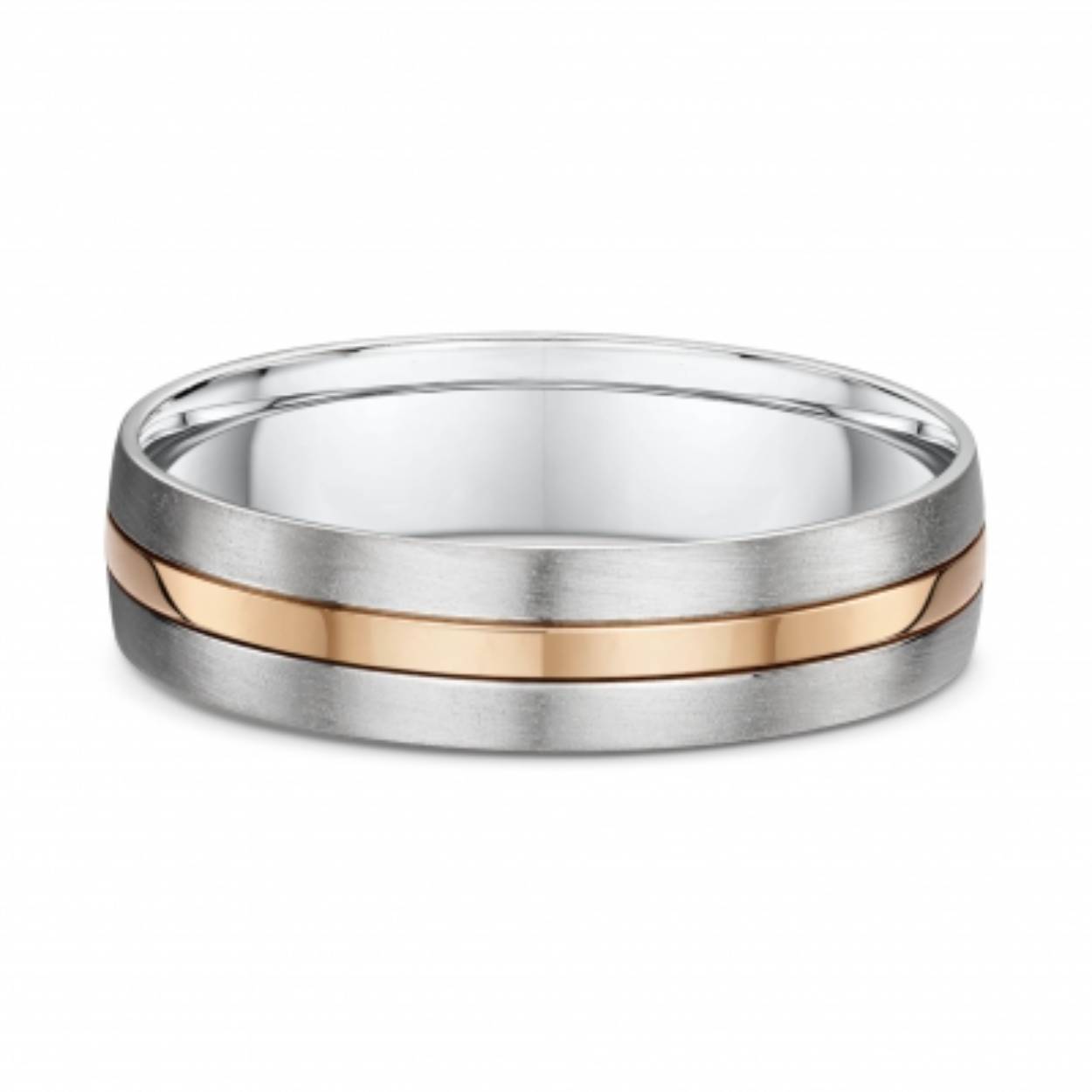 14karaat wit/rosegouden trouwringen. De damesring is gezet met in totaal 0.030crt diamant