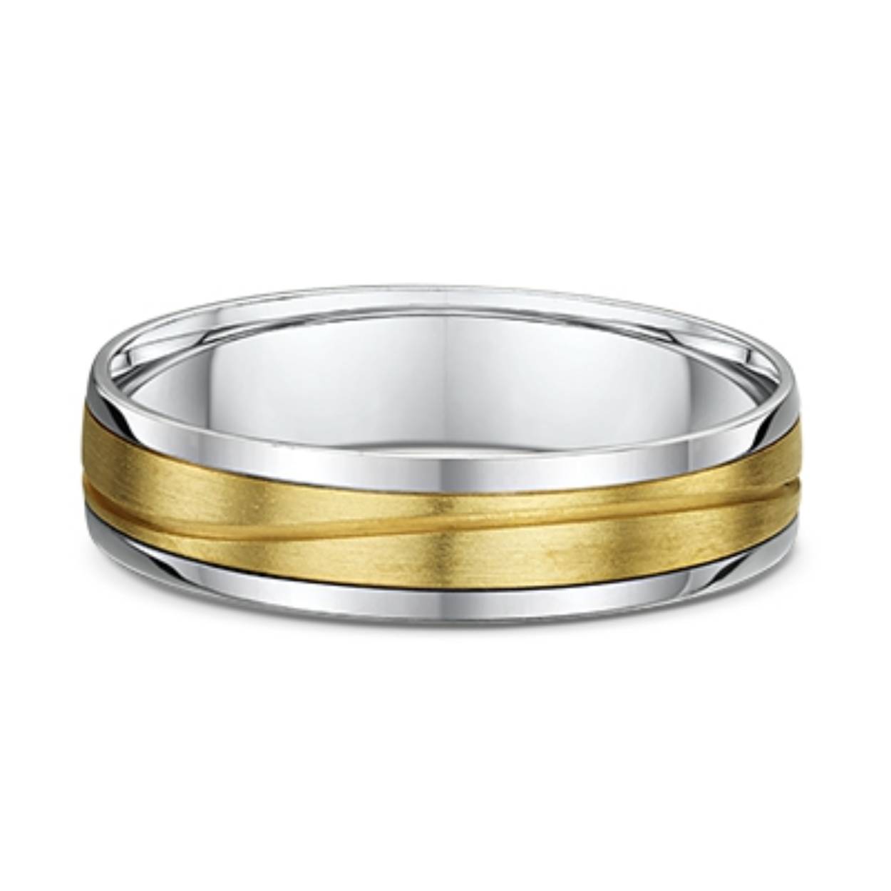 bicolor trouwringen, geel/witgoud, damesring gezet met totaal 0.018crt diamant.