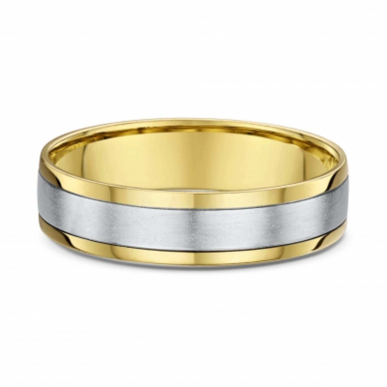 Bicolor trouwringen, 14 karaat, Damesring gezet met totaal 0.03crt diamant