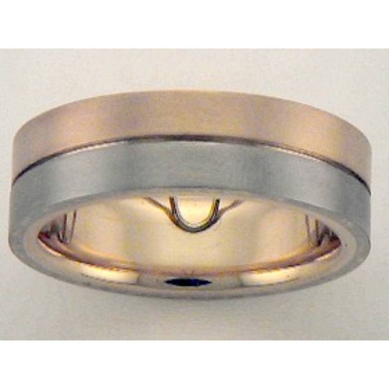 585 bicolor trouwringen, geel/witgoud, mat, 7 mm breed. De damesring is gezet met totaal 1.10ct briljant 11 steens.