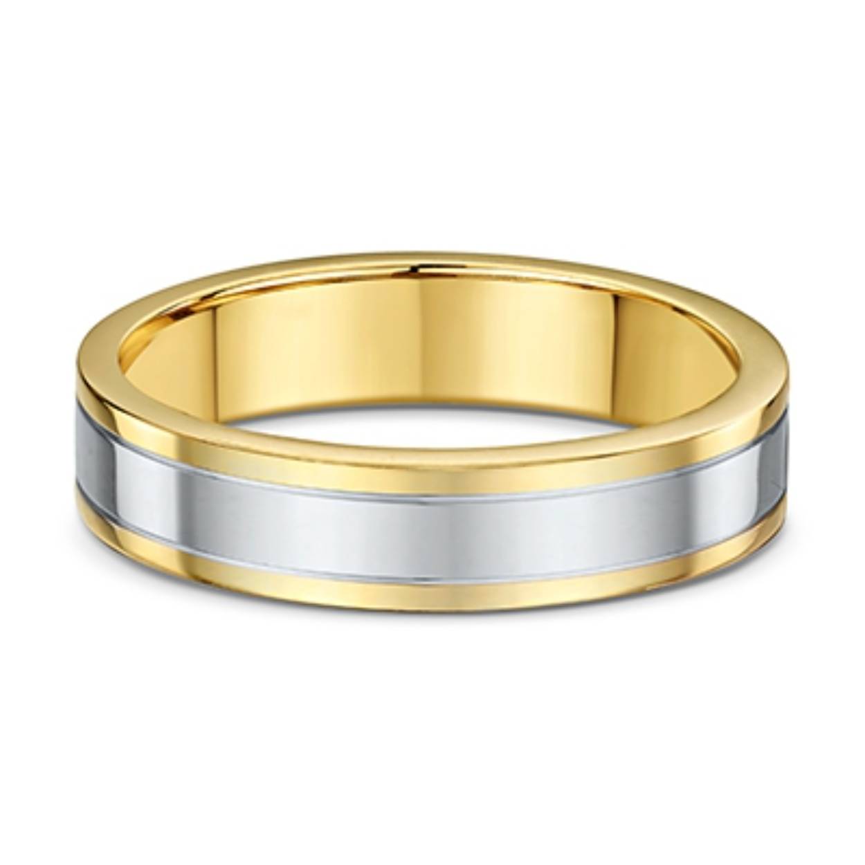 585 bicolor trouwringen geel/witgoud, 6 mm breed, glanzend. De damesring is gezet met totaal 1.225 ct briljant.