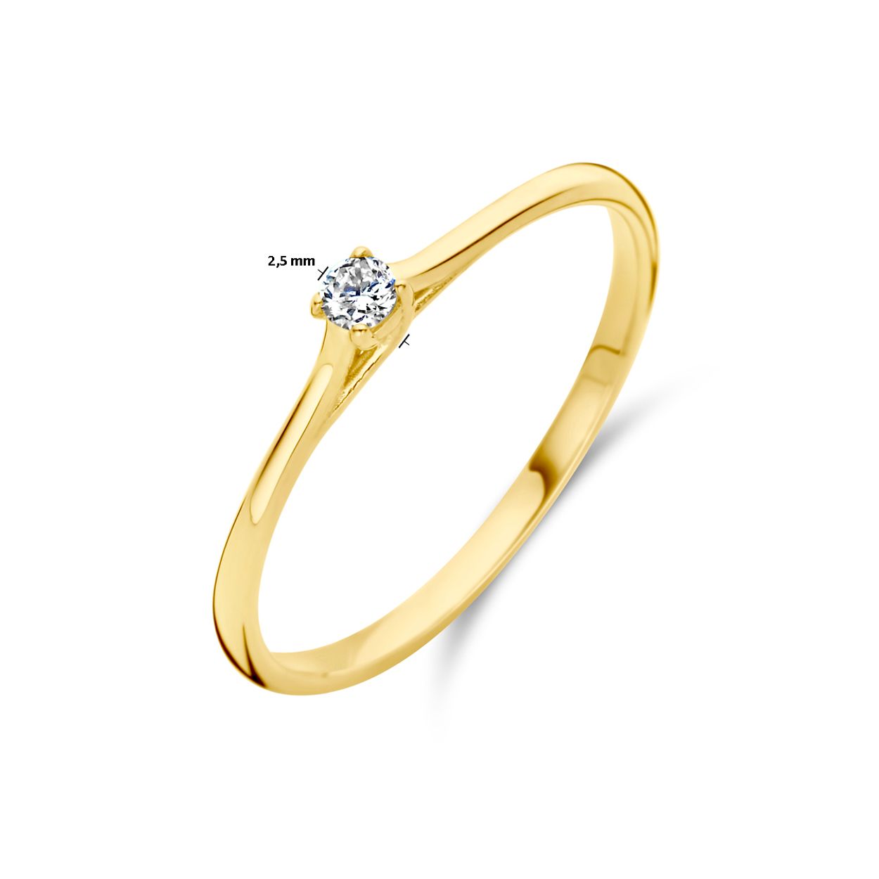 14k Geelgouden ring uitgevoerd met diamant 0,05crt. De ring heeft een breedte van 2.5mm.