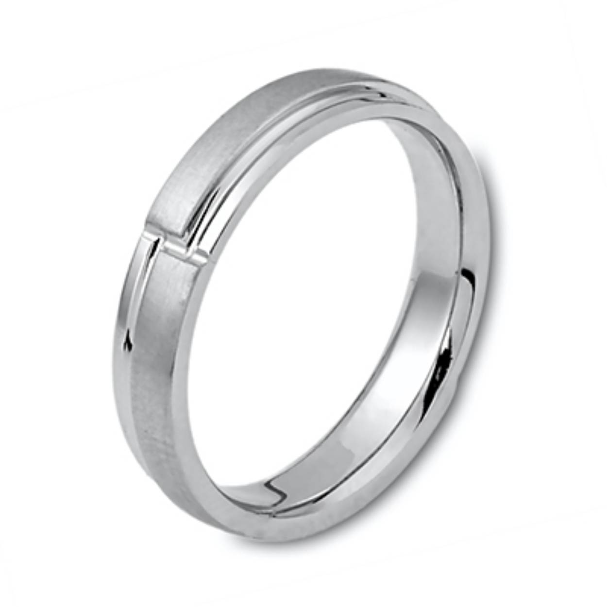 585 witgouden trouwringen, 4.5 mm breed. Mat/glimmend. de damesring is gezet met 0.065ct briljant.