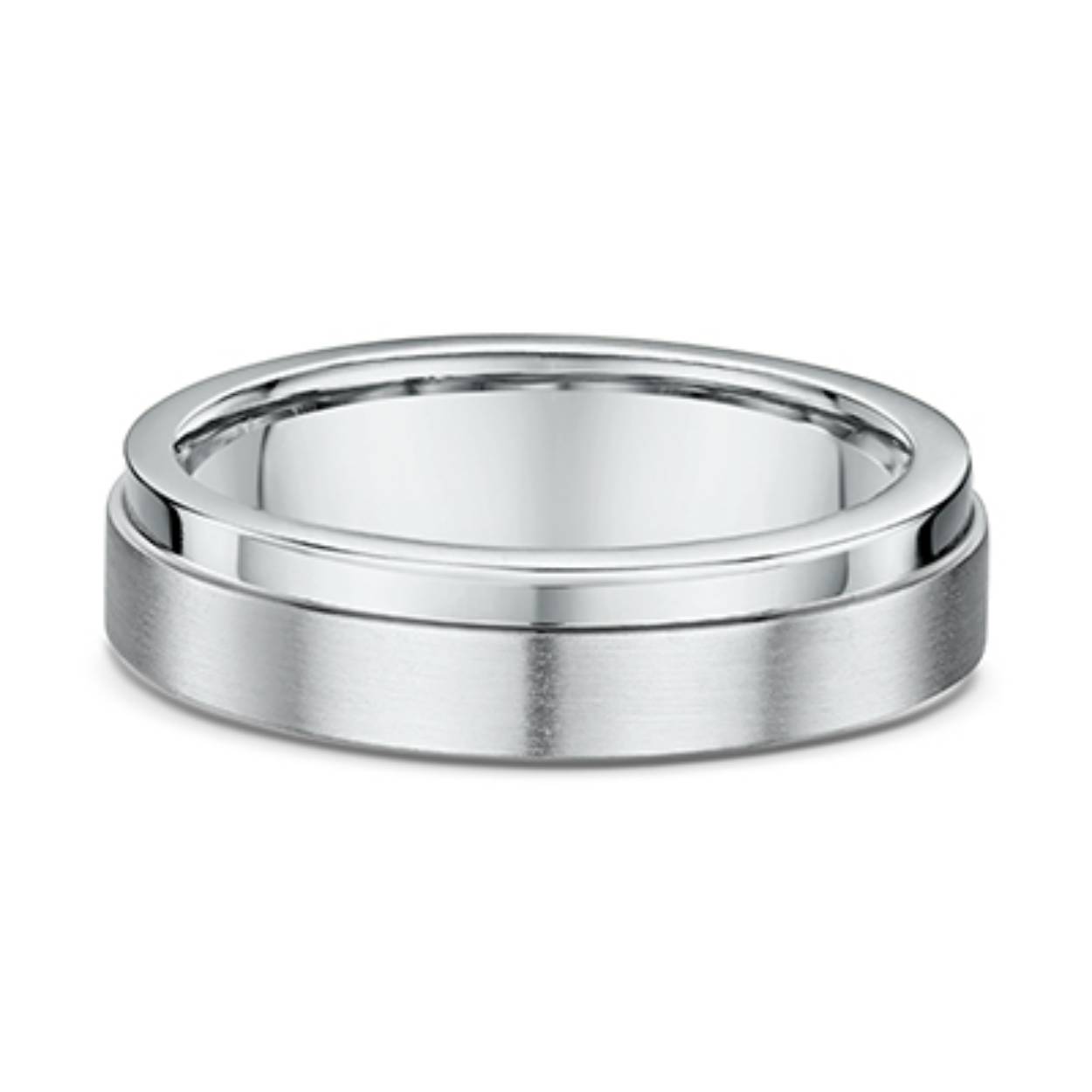585 witgouden trouwringen, mat/glimmend. 5 mm breed. De damesring is gezet met 0.045ct briljant