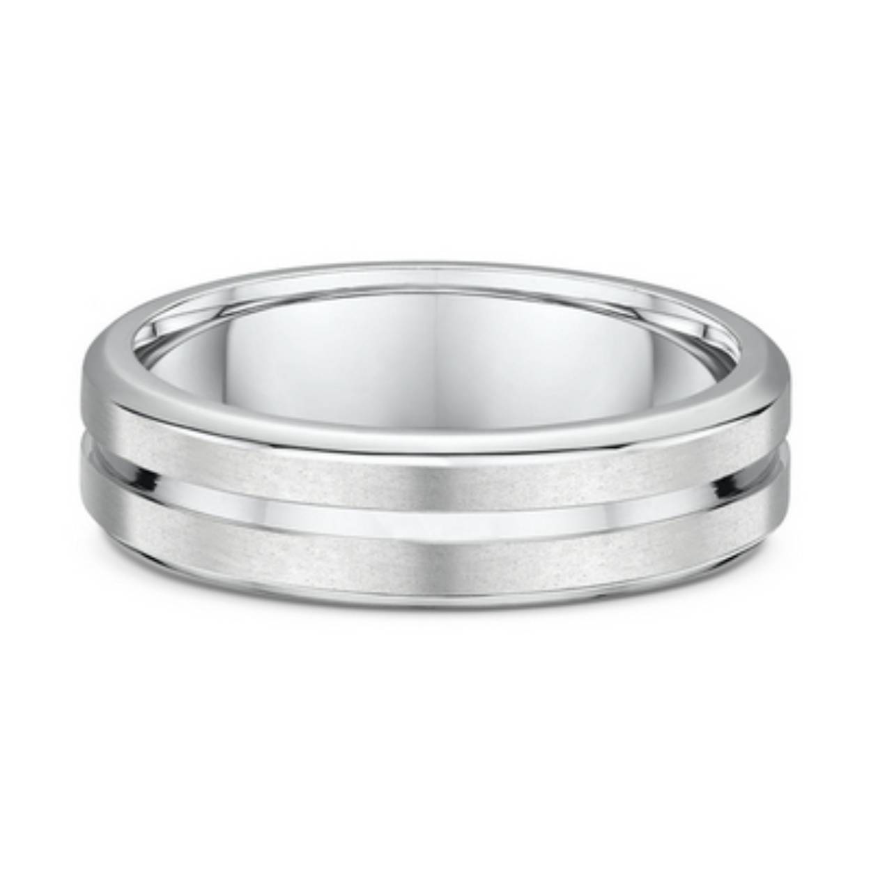 witgouden trouwringen, 6.5 mm breed, mat/glimmend De damesring is gezet met 0.120 ct baquette