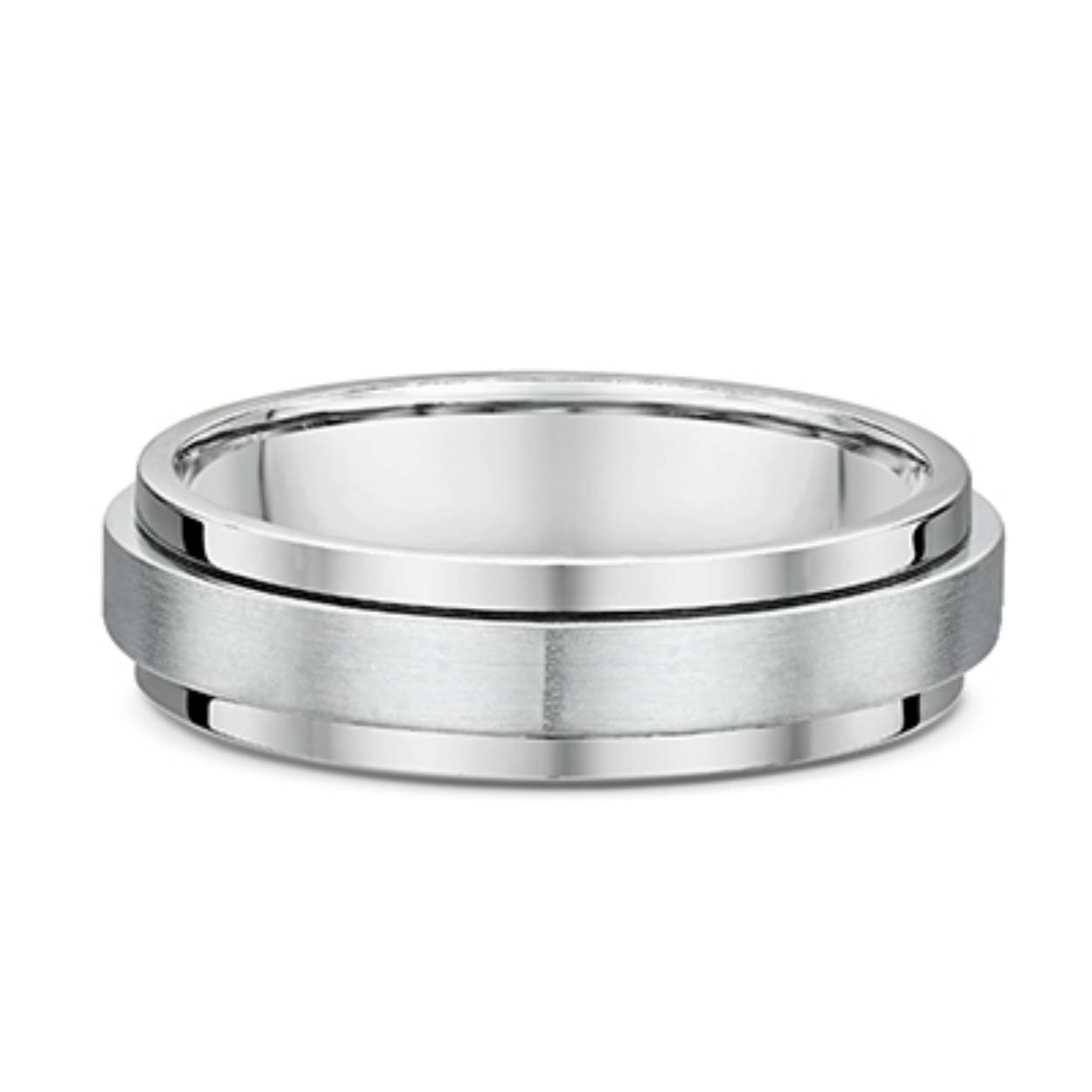Trouwringen witgoud met in de damesring een diamant. Beide ringen zijn 5 mm breed