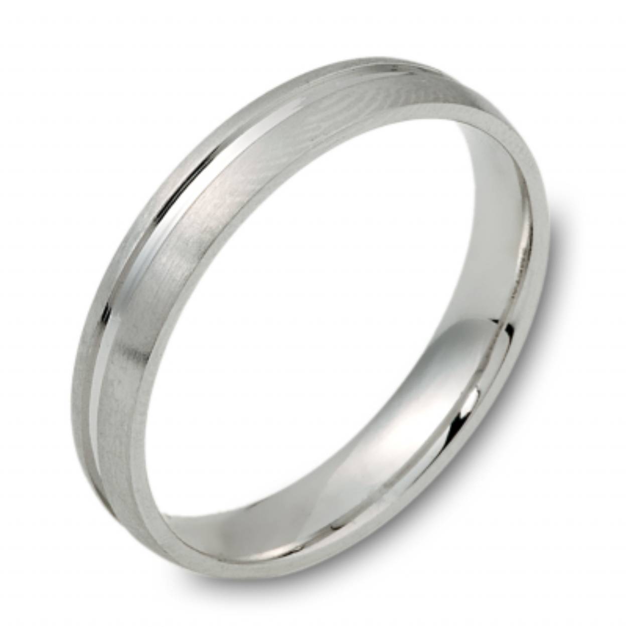 Trouwringen witgoud met in de damesring een diamant. Beide ringen zijn 4 mm breed
