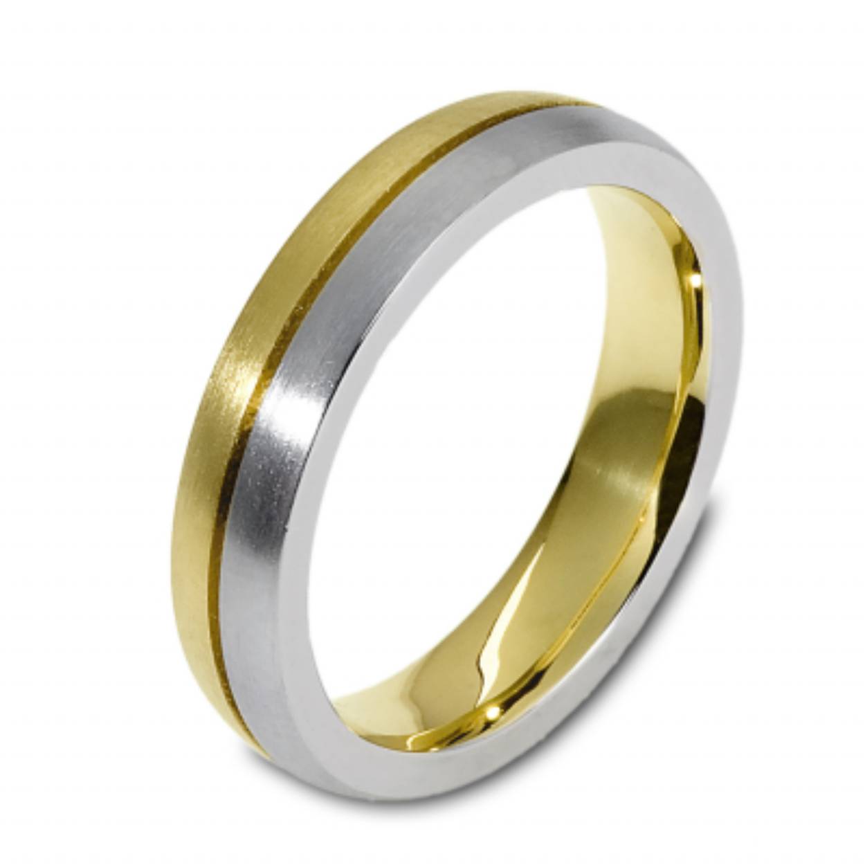 14k bicolor gouden trouwringen. De dames ring is bezet met briljant geslepen diamanten van totaal 0.28ct. Beide ringen zijn 5,2mm breed.