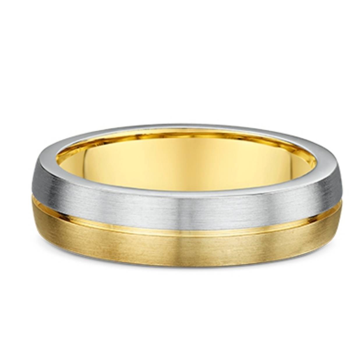 14k gouden bicolor trouwringen. De dames ring is bezet met een briljant geslepen diamant van 0.25ct. Beide ringen zijn 5mm breed.