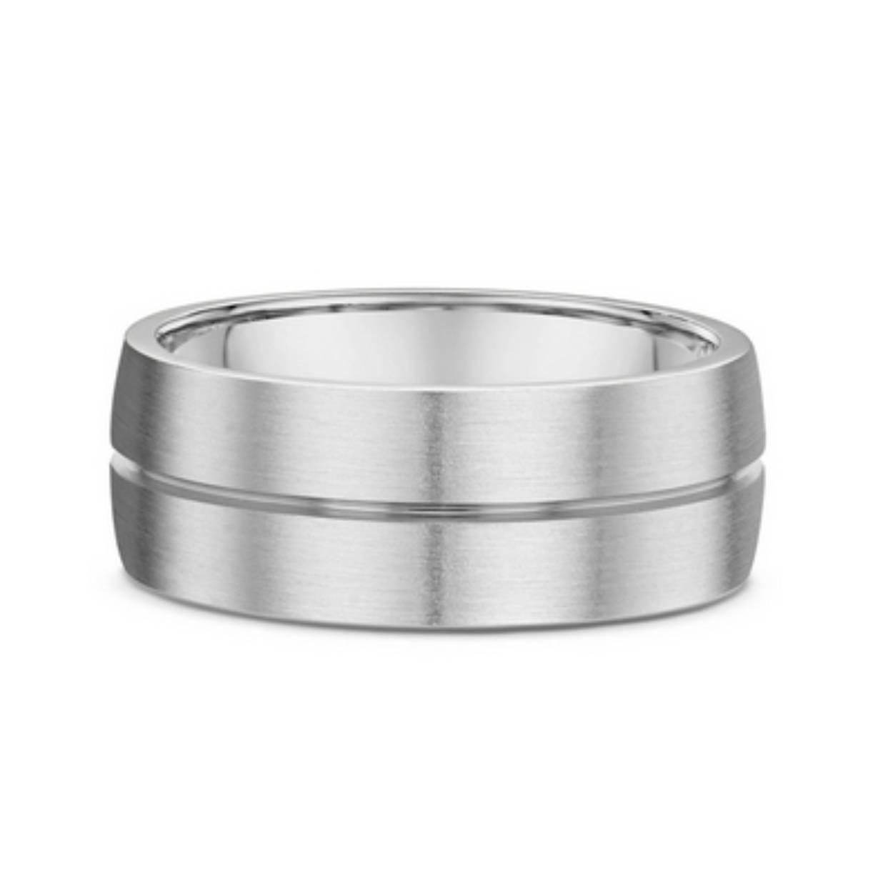 585 witgouden trouwringen. Mat/glimmend. Damesring is 5 mm en is gezet met 0.02ct briljant. De herenring is 7mm breed
