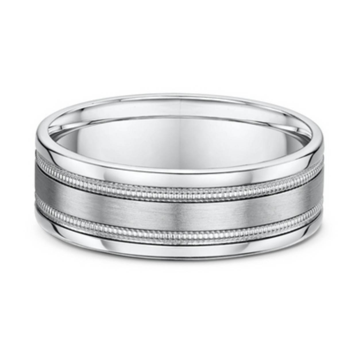 585 witgouden trouwringen. Mat/glimmend. Damesring 5 mm breed zonder diamant, herenring 7 mm