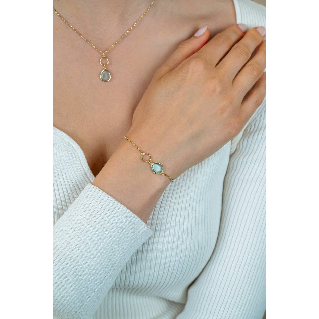 zilver geelvergulde zinzi armband met een licht blauwe zirkonia