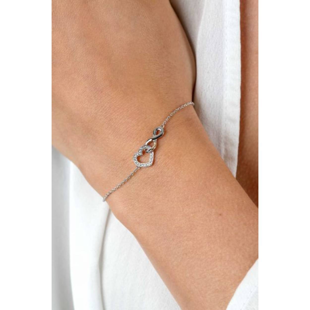 ZINZI zilveren armband met Infinity teken verbonden met een open hart, bezet met witte zirconia's 17-19cm ZIA2596
