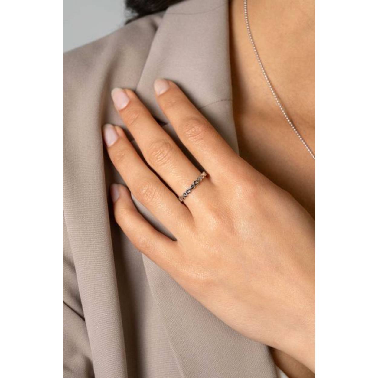 ZINZI zilveren aanschuifring met zeven sierlijke Infinity schakels. De ring is 2,6mm breed. Gemakkelijk te combineren met andere zilveren ZINZI aanschuifringen. Mix & Match! De ring is vervaardigd van eerste gehalte zilver (925) en met extra rodiumlaag voor een mooie glans.