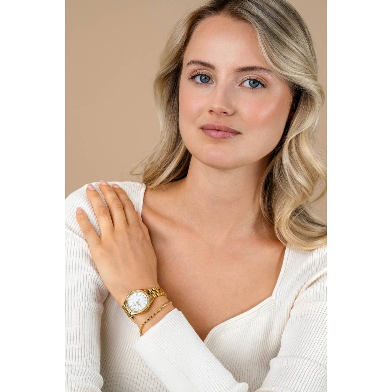 Zinzi edelstalen horloge geel verguld met een parelmoer wijzerplaat en zirkonia
